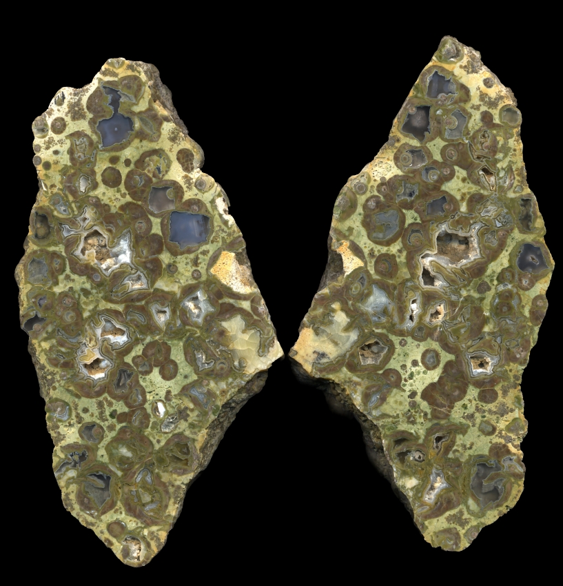 Now this is something really different. A mass of thunderegg conglomerate - a whole mass of small thundereggs still in the rhyolite they formed in. Each individual egg is rarely more than an inch across and they range down to tiny little flecks of matrix.