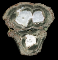 Warm Springs is an interesting area. On an indian reservation, it was out of reach of non-native-American collectors for a long time and had achieved an almost legendary status. That changed rather with the arrival on the scene of Elke Littleleaf Kirk, who brought a large amount of these eggs onto the market again. They are varied and it is clear that there are a lot of different beds and geologies. They are often brittle, incomplete and have complex shapes, sometimes reaching very large sizes. They fall roughly into two groups - the Happy Valley area stones and the Mutton Mountain Area stones. Within these basic areas, there are a few defined locations (e.g. Bear Hole), though even those display much variation. For the time being they will have to remain as a loose conglomeration of different stones.