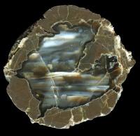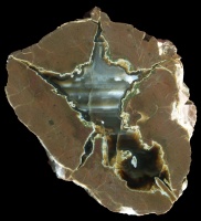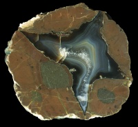 A new discovery that is quite different to other stones in this county. The location is secret for the moment. They are very dark stones with almost black agate, though nevertheless with a range of features such as waterlines. They are also known for having very substantial buttons of nucleation points - large blobs of material distinct from the basic matrix.